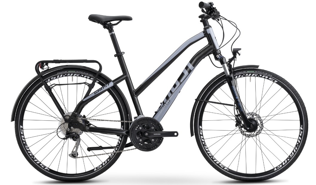 GHOST Square Trekking Essential je maximálně funkční a spolehlivé kolo, vybavené vším, co potřebujete pro každodenní jízdu. V elegantních barvách a jednoduchém a čistém vzhledu dokáže zaujmout na první pohled. S kvalitní výbavou, ke které mimo jiné patří nábojové dynamo pohánějící LED osvětlení, blatníky a speciálně navrženým nosičem je jízda nejen bezpečná, ale také praktická! Verze Ladies má navíc sníženou horní rámovou trubku pro pohodlný výstup a nástup. A pokud to všechno nestačí, promyšlená geometrie přesvědčí ty, kteří chtějí víc – absolutně pohodlný a extrémně hladký chod.