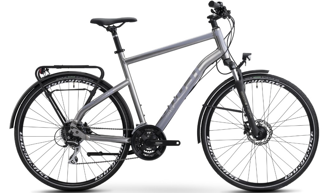GHOST Square Trekking je všestranné, sportovní kolo s moderním městským designem. V elegantních barvách a jednoduchém a čistém vzhledu dokáže zaujmout na první pohled. S kvalitní výbavou, ke které mimo jiné patří nábojové dynamo pohánějící LED osvětlení, blatníky a speciálně navrženým nosičem je jízda nejen bezpečná, ale také praktická! A pokud to všechno nestačí, promyšlená geometrie přesvědčí ty, kteří chtějí víc – absolutně pohodlný a extrémně hladký chod.