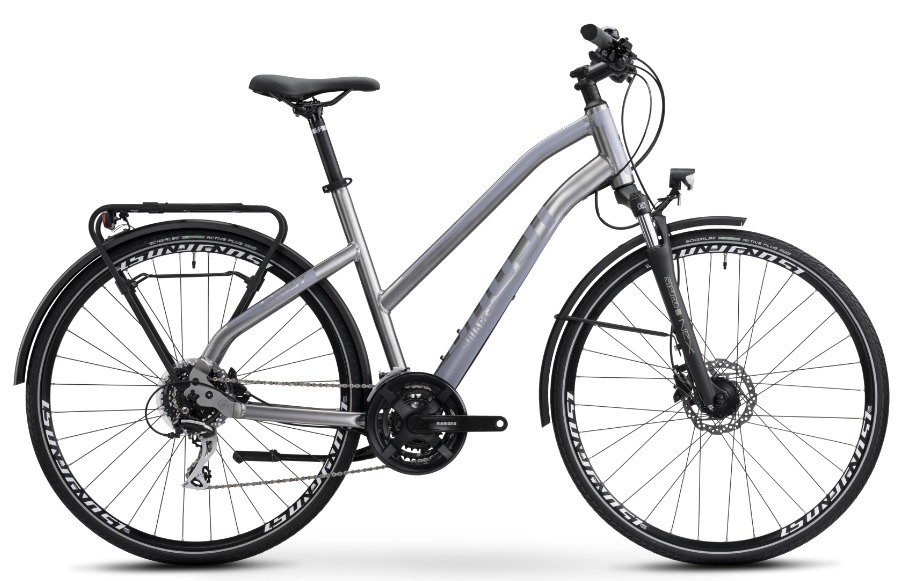 GHOST Square Trekking je všestranné, sportovní kolo s moderním městským designem. V elegantních barvách a jednoduchém a čistém vzhledu dokáže zaujmout na první pohled. S kvalitní výbavou, ke které mimo jiné patří nábojové dynamo pohánějící LED osvětlení, blatníky a speciálně navrženým nosičem je jízda nejen bezpečná, ale také praktická! Verze Ladies má navíc sníženou horní rámovou trubku pro pohodlný výstup a nástup. A pokud to všechno nestačí, promyšlená geometrie přesvědčí ty, kteří chtějí víc – absolutně pohodlný a extrémně hladký chod.