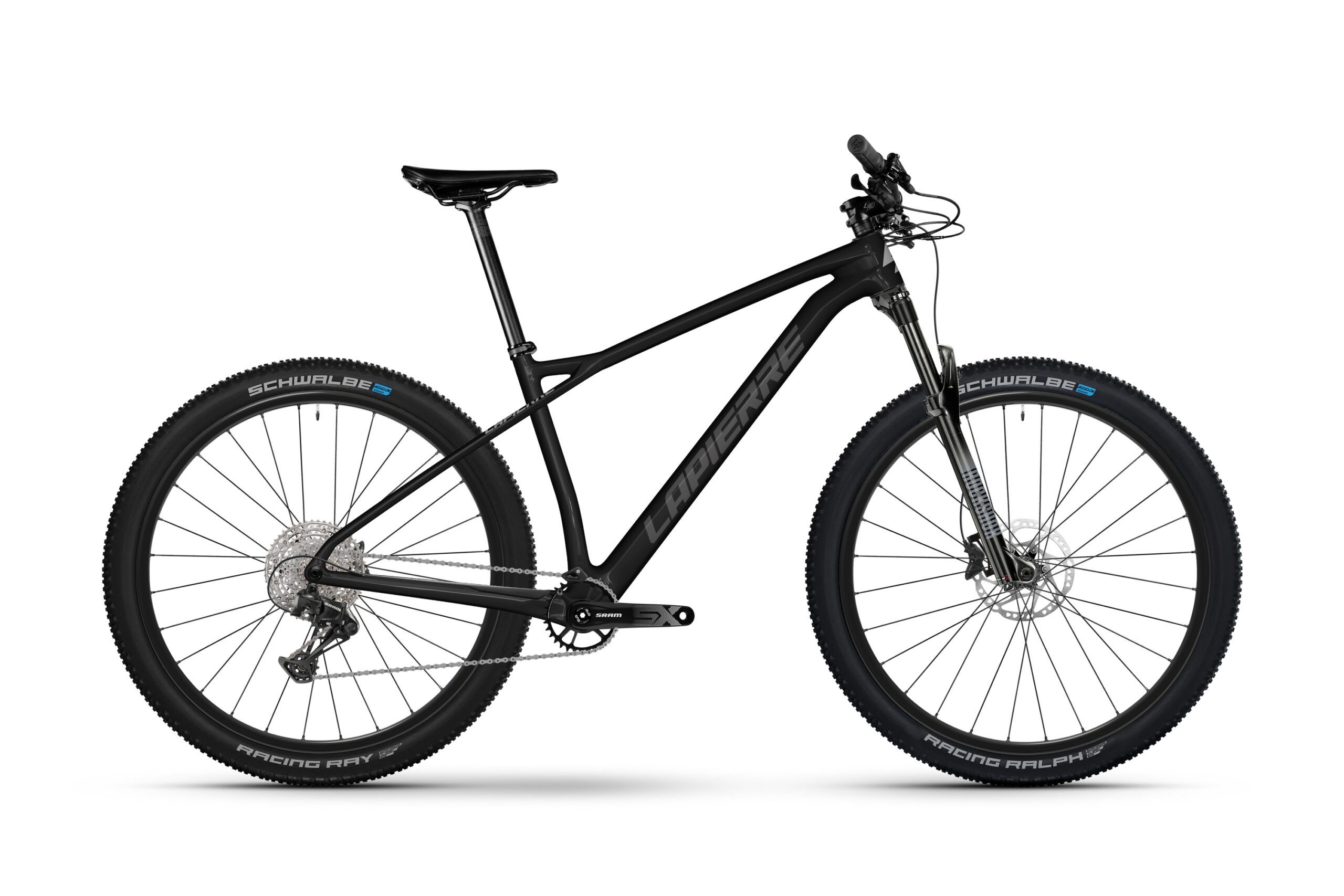 Lapierre Prorace CF je hardtail postavený pro čistou rychlost, přesnost a vytrvalost. Navržený pro dominanci v cross-country.. 3D Tubular konstrukce sedlové trubky, převzatá z nejvyšších silničních modelů Lapierre, odděluje sedlové vzpěry od sedlové trubky, čímž efektivně tlumí vibrace a zvyšuje pohodlí jezdce. Spolu s 100mm odpruženou vidlicí tento hardtail vyniká v technickém terénu a zároveň nabízí explozivní akceleraci na rychlých XC tratích. Lapierre vyladil geometrii pro moderní cross-country závody – delší reach, nižší stack a ostřejší úhel hlavové trubky (68°) poskytují lepší kontrolu při sjezdech, zatímco strmější úhel sedlové trubky (74°) optimalizuje efektivitu šlapání.